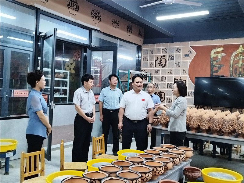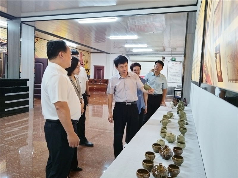 魏雷東一行分別到我公司的生產(chǎn)車間、研學(xué)基地、彩陶藝術(shù)館等地進(jìn)行了實(shí)地考察,對(duì)我公司的彩陶制作工藝、非遺保護(hù)、文創(chuàng)研發(fā)等工作給予肯定,并就下一步校企合作、名師工作室等事宜進(jìn)行座談交流。