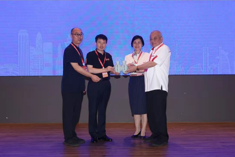 河南仰韶科技開發(fā)有限公司董事長王新軍現(xiàn)場贈(zèng)送由王新軍非遺團(tuán)隊(duì)創(chuàng)作禮品:仰韶瓷雙聯(lián)壺。圖為王新軍大師和會(huì)長論壇發(fā)起人、會(huì)長論壇組委會(huì)會(huì)長徐軍昌,中國駐馬來西亞大使館馬翠宏參贊、馬來西亞(華總)會(huì)長丹斯里吳添泉博士的合影。