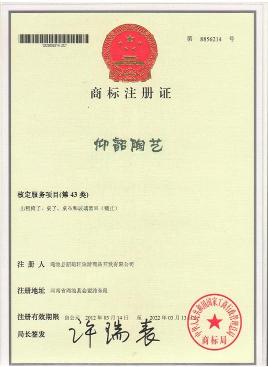 商標注冊證--仰韶陶藝