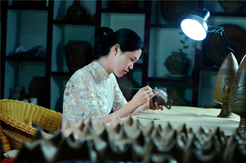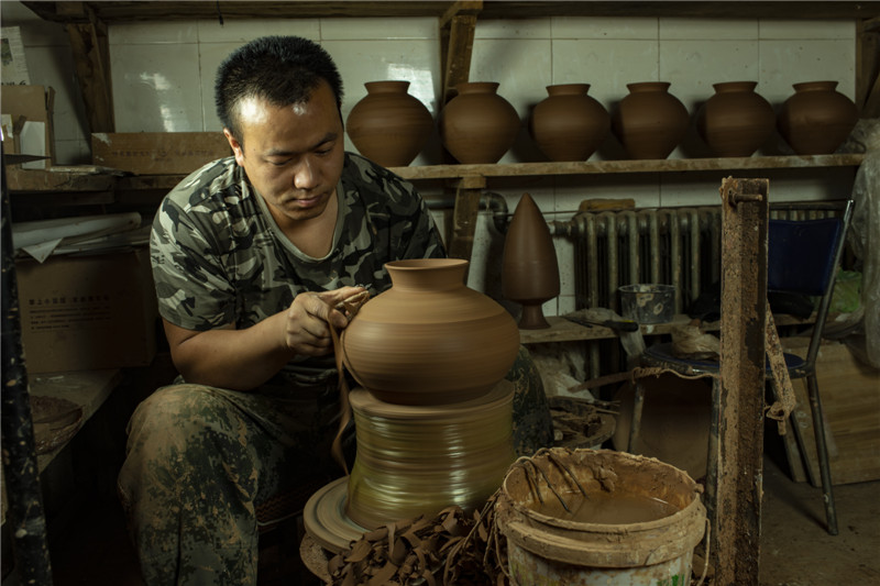 選用優(yōu)質(zhì)陶土,加上一把黃河泥,經(jīng)過打磨、雕刻、燒制等系列工序后,搖身一變成了一個古色古香的彩陶。河南仰韶科技開發(fā)有限公司總經(jīng)理、仰韶彩陶傳承人劉新安說,“我們?nèi)慷际侨斯ぶ铺眨胤ㄗ鳂I(yè),滿輪拉坯成型,天然無機顏料彩繪,差不多整個制作過程要兩周左右?!?/span>